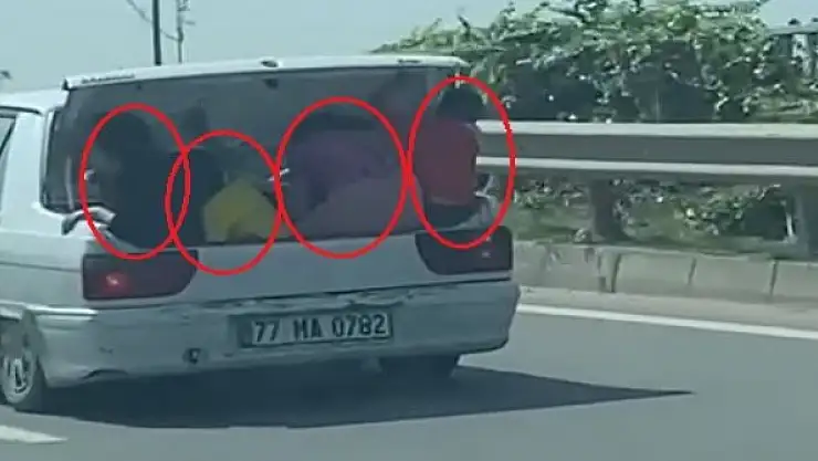 YALOVA'da, 4 çocuğun seyir halindeki otomobilin bagajında yaptığı tehlikeli yolculuk, cep telefonu kamerasıyla kaydedildi.