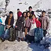 Danyal Yılmaz ise tatili fırsat bilip arkadaşlarıyla kaymanın keyfini çıkardığını belirterek, "Hem mutluyuz hem de eğleniyoruz. Su bidonuyla kayak yapıyoruz" ifadelerini kullandı.