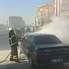 Çocuklarıyla seyir halinde olduğu araç yandı