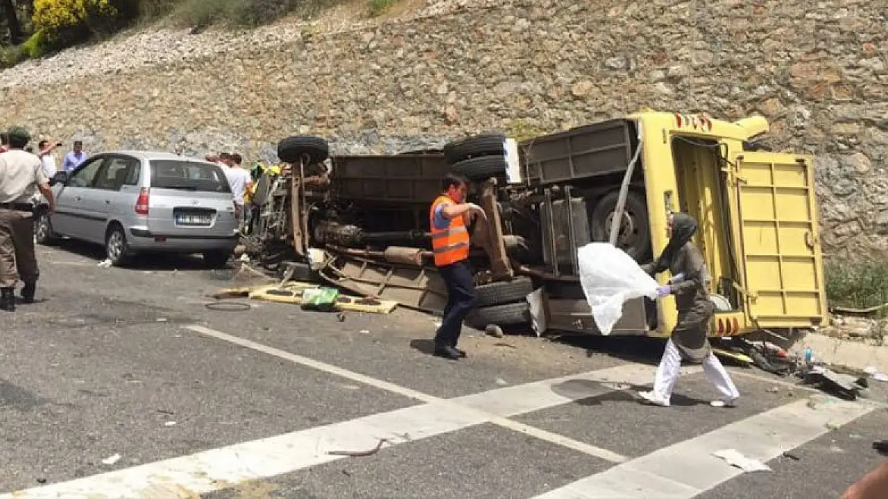 Muğla'da tur otobüsü, keskin virajı alamayarak 30 metre yükseklikten yuvarlandı.