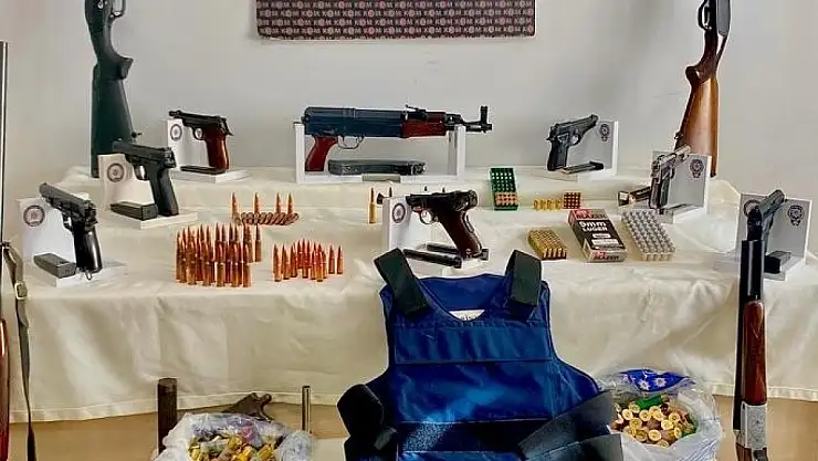 Belirlenen adreslere operasyon düzenlendi. Eş zamanlı gerçekleştirilen operasyon çerçevesinde çok sayıda mühimmat ele geçirildi. Ele geçirilenler arasında 1 AK-47 kalaşnikof tüfek ve tefeğe ait şarjör, 667 çeşitli çap ve markalarda tabanca fişeği, 228 çeşitli çap ve markalarda uzun namlulu silah fişeği olması dikkat çekti. Ayrıca 2 el bombası, 8 çeşitli ebat ve markalarda ruhsatsız tabanca, 5 av tüfeği, 1 pompalı tüfek, 3 kuru sıkı tabanca, 25 şarjör, 1 balistik yelek, 2 uzun namlulu silah şarjörü, 2 tabanca namlusu, 1 tabanca alt takımı, 1 adet tabanca üst sürgü takımı ile daralı ağırlığı yaklaşık 12 gram olan uyuşturucu madde ele geçirildi. Operasyonda 8 şüpheli yakalanarak gözaltına alındı. Şahıslarla ilgili adli işlemlerin devam ettiği öğrenildi.