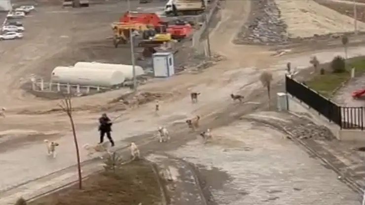 Yusufeli yeni yerleşim yerinde yürüyen bir kişi, çevredeki sahipsiz köpeklerin üzerine geldiğini fark etti.