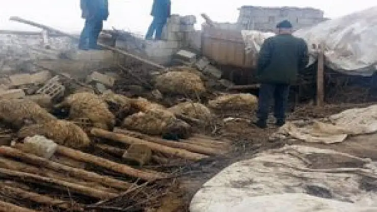 Van'ın Gürpınar ilçesindeki depremde hasar gören ahırın çökmesi sonucu küçükbaş 70 hayvan telef oldu.