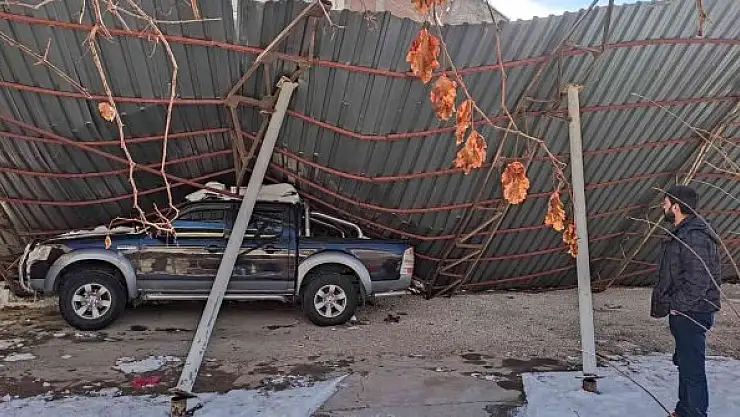 Malatya'da kar kütlesine dayanamayan oto parkın çöken çatısı karton gibi iki ayrıldı.