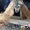 Tokat'ın Reşadiye ilçesinde çöp ayrıştırma makinesine düşen köpek son anda fark edilerek kurtarıldı.