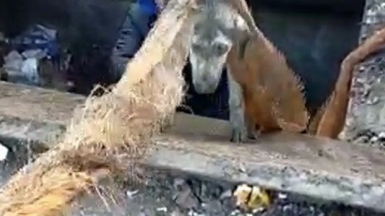 Çöp ayrıştırma makinesine düşen köpek kurtarıldı