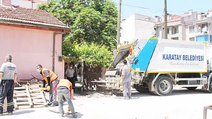 Karatay Büyük Sinan Mahallesi'nde, bir çocuğu öldükten sonra eline geçen her şeyi biriktirmeye başlayan bir annenin beş çocuğuyla birlikte çöp yığınlarının arasında yaşadığı ev Karatay Belediyesi yetkililerince temizlendi