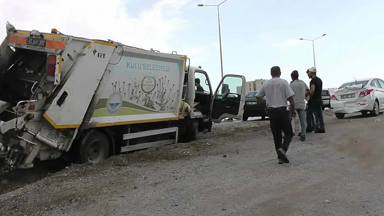 Konya'nın Kulu ilçesinde çöp kamyonu ile otomobilin çarpışması sonucu meydana gelen trafik kazasında 2 kişi yaralandı.