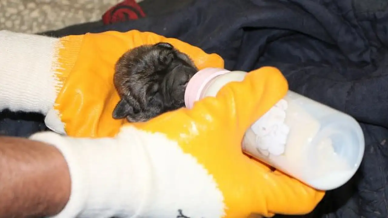 BİNGÖL'ün Karlıova ilçesinde, itfaiye erleri çöp konteynerinde buldukları 6 yavru köpeği 2 gün biberonla süt vererek besledi.