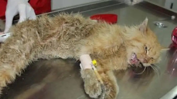 Yaralı kedinin yapılan tedavisinin ardından vücut ısısının normale döndüğü ve hayata tutunduğu öğrenildi.