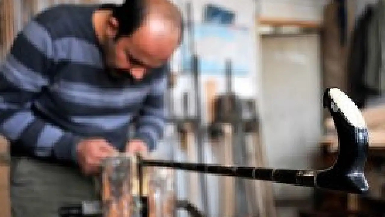 Yıllardır baston üreten Refa Gökbulak, yapılan açıklamada, hayvanlara ait boynuzları kullanarak yaptığı bastonların kendisine ait özel bir tasarım olduğunu söyledi.