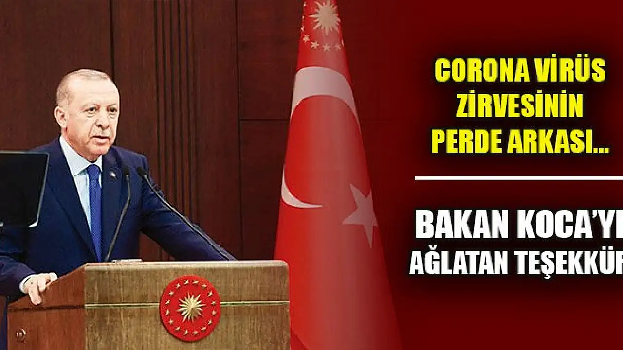 Cumhurbaşkanı Erdoğan, koronavirüsle mücadele zirvesinde Sağlık Bakanı Koca'yı süreci iyi yönetmesi nedeniyle kutlarken, sağlık çalışanlarına da 'Takdire şayan fedakârlık gösterdiler' diyerek teşekkür etti. Erdoğan'ın sözleri üzerine Koca, gözyaşlarını tutamadı.