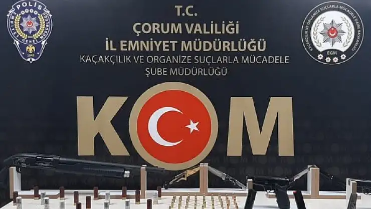 Çorum Emniyet Müdürlüğü Kaçakçılık ve Organize Suçlarla Mücadele Şube Müdürlüğü ile Narkotik Suçlarla Mücadele Şube Müdürlüğü tarafından il merkezinde düzenlenen 2 ayrı operasyonda çok sayıda silah ve mühimmat ele geçirildi.