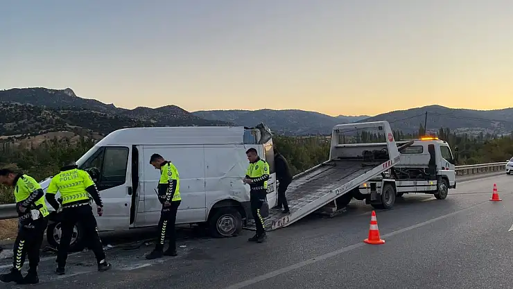 ÇORUM'un Osmancık ilçesinde, lastiği patlayan minibüsün devrilerek bariyerlere çarptığı kazada 1'i çocuk 10 kişi yaralandı.