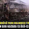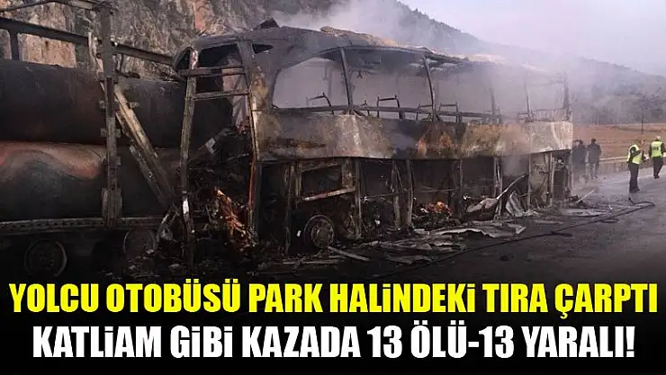 Çorum'un Osmancık ilçesinde yolcu otobüsü, park halindeki TIR'a çarptı. Otobüsün alev aldığı kazada, ilk belirlemelere göre 13 kişi öldü, 16 kişi de yaralandı. Ölü sayısının artmasından endişe edildiği belirtildi. Kaza, saat 06.00 sıralarında Osmancık ilçesi Kumbel köyü mevkiinde meydana geldi. İstanbul'dan 26 yolcusuyla Tokat'a gitmek için yola çıkan, plakası ve sürücüsü henüz öğrenilemeyen yolcu otobüsü, yol kenarında, park halindeki LT 640 TL yabancı plakalı TIR'a arkadan çarptı. Çarpmanın etkisiyle otobüs alev aldı.