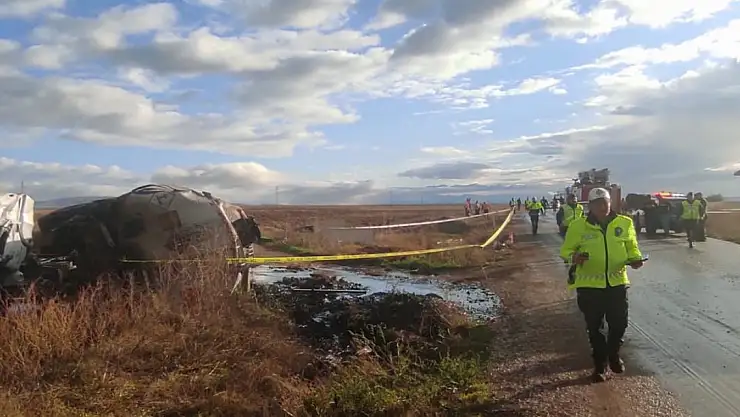 Çorum'un Alaca ilçesinde işçileri taşıyan servis minibüsü ile zift yüklü tankerin çarpışması sonucu 1 kişi öldü, 18 kişi yaralandı.