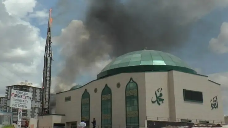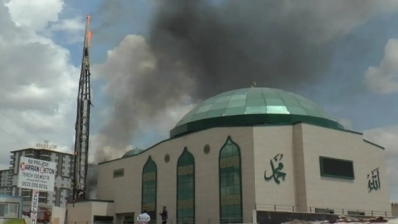 Şanlıurfa'da cuma namazı öncesi cami minaresinde çıkan yangın korkuttu.