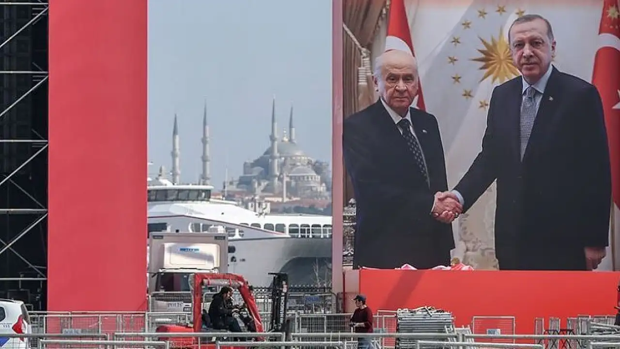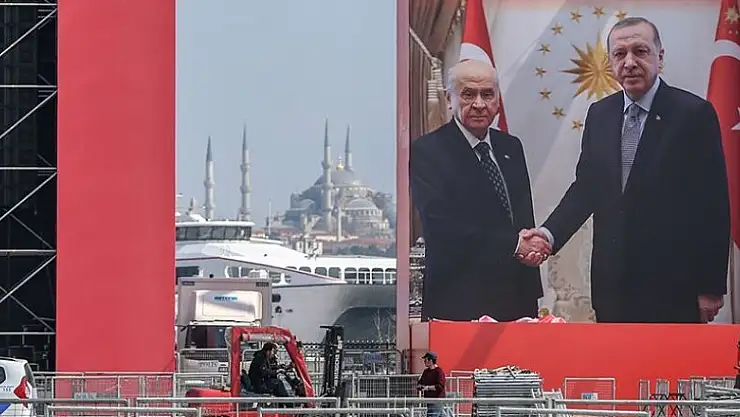 Meydanın birçok yerine ise Türkiye Cumhuriyetinin kurucusu Mustafa Kemal Atatürk, Cumhurbaşkanı Recep Tayyip Erdoğan ve MHP Genel Başkanı Devlet Bahçeli'nin dev posterleri asıldı. Sahnede bulunan Erdoğan ve Bahçeli'nin tokalaştığı fotoğraf karelerinin üzerine de "İstanbul ehline emanet" ve "İstanbul bizim için bir aşk hikayesi" yazıldı.