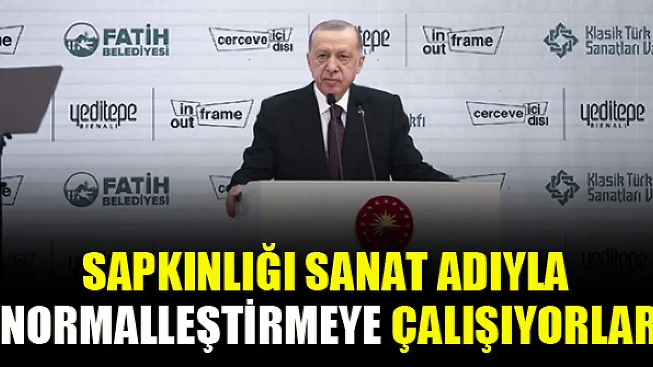 Cumhurbaşkanı Erdoğan, 'Her türlü sapkınlığı sanat adı altında normalleştirme çabası var. Bu bize yönelik bir saldırı var. Sapkınlığı, marjinalliği sanat adı altında normalleştirme gayesi taşıyan sinsi saldırıya karşı imkanlarımızı devreye almalıyız' ifadelerini kullandı.