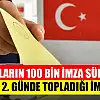 Cumhurbaşkanlığı adaylığı Yüksek Seçim Kurulu (YSK) tarafından kabul edilen 11 ismin 100 bin imza yarışı devam ediyor. 27 Mart'ta son bulacak sürecin ikinci günü de tamamlandı. İkinci günün sonunda 11 cumhurbaşkanı adayının topladığı imza sayısı belli oldu. 100 bin imza sürecinde Memleket Partisi Genel Başkanı Muharrem İnce, toplamda 51 bin 367 imza topladı. İkinci sıradaki Yeniden Refah Partisi Genel Başkanı Fatih Erbakan ise 46 bin 725 imza topladı.