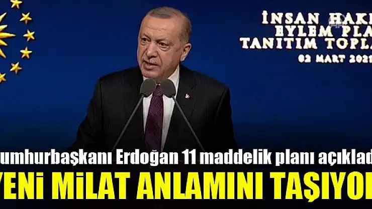 “Hayatın bizatihi kendisinin kesintisiz bir değişim süreci olduğu gerçeği, her alandaki reformları kesintisiz sürdürmemiz gerektiğine işaret ediyor” diyen Cumhurbaşkanı Erdoğan, “Ülkeyi yönetme sorumluluğu üstlendiğimiz günden beri bu doğrultuda attığımız tarihi önemdeki adımların şahidi, bizatihi milletimizin kendisidir. Bugün açıklayacağımız Eylem Planı da değişim ve reform irademizin devam ettiğinin ve devam edeceğinin bir örneğidir. İnsan Hakları Eylem Planı, geçmişin muhasebesi ile geleceğin murakabesinin ürünü bir belgedir. Her maddenin hayata geçmesi için gereken adımları kararlılıkla atacağız. İnşallah önümüzdeki hafta da ekonomik reform programımızı milletimizle paylaşacağız” ifadelerini kullandı.