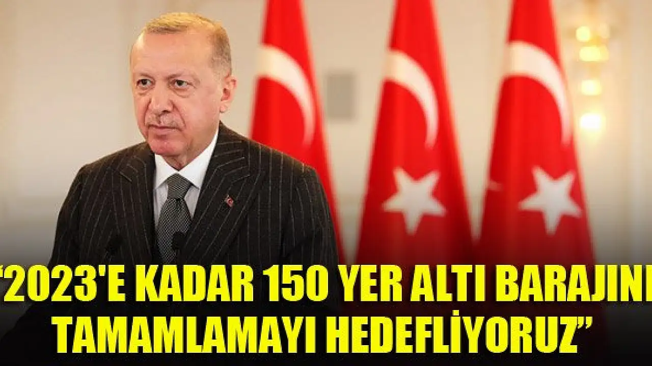 Cumhurbaşkanı Erdoğan, '(Kuraklık) Karşı karşıya bulunduğumuz durum, bizi alternatif su depolama yöntemleri arayışına itmektedir. Halen devam eden çalışmalarla 2023'e kadar 150 yer altı barajını tamamlamayı hedefliyoruz.' dedi.