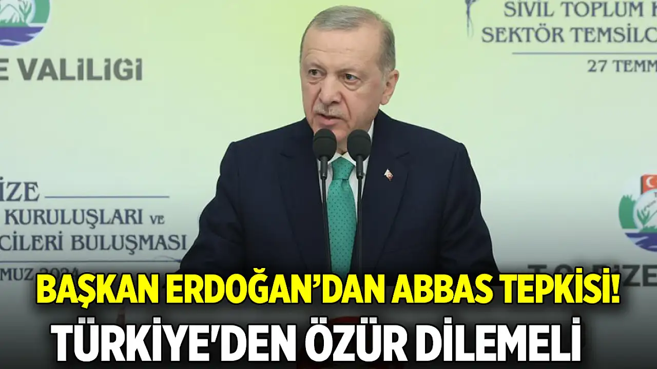 Erdoğan Rize'de yaptığı konuşmada Filistin Yönetimi Başkanı Mahmud Abbas'ın Türkiye'ye Parlamento'da konuşmak üzere davet edildiğini fakat gelmediğini hatırlatarak 'Bizden özür dilemesi lazım. Bekliyoruz. Bakalım gelebilecek mi?' dedi.