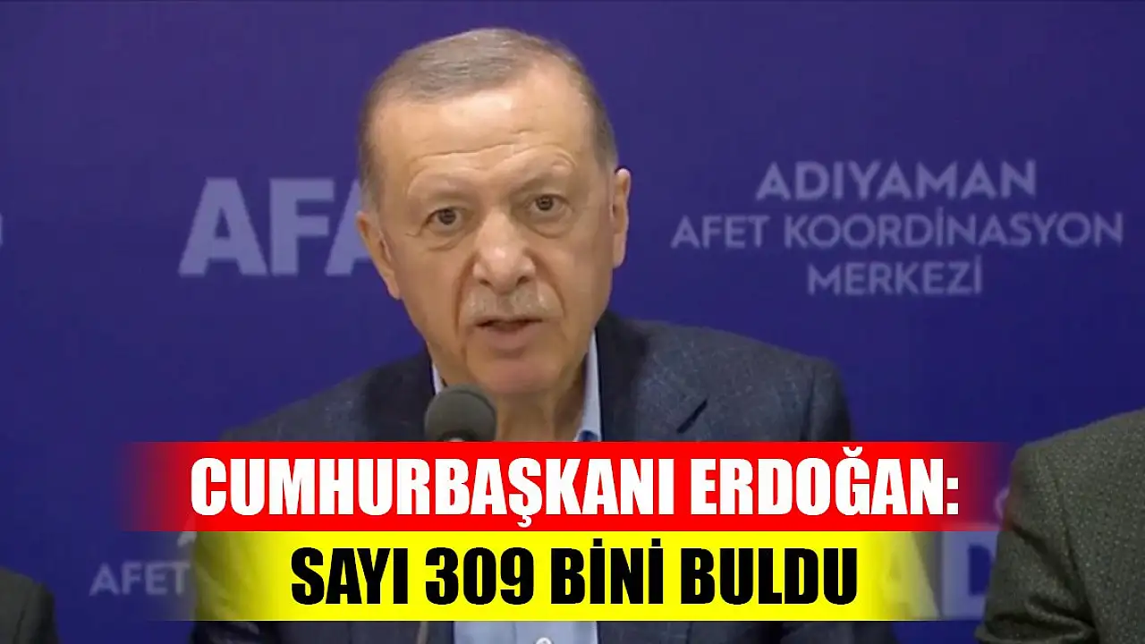 Cumhurbaşkanı Recep Tayyip Erdoğan, Kahramanmaraş merkezli depremlerden etkilenen bölgelerde incelemelerde bulunmak için gittiği Adıyaman'da açıklama yaptı. Cumhurbaşkanı Erdoğan, 'Deprem bölgesi genelinde zemin etütleri tamamlanarak inşa aşamasına gelinen konut sayısı 309 bini buldu.' dedi.