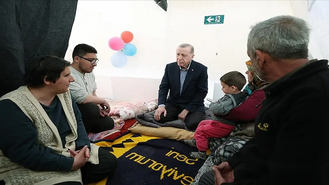 Cumhurbaşkanı Recep Tayyip Erdoğan, Kahramanmaraş'ın Afşin ilçesinde depremzedeler için oluşturulan çadır kenti ziyaret etti.