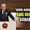 "Buna karşılık birileri, maalesef, ülkemizin adalet sistemini, nerelerle bağlantılı oldukları az çok tahmin edilen suç çetelerinin kirli oyunlarına kurban etmek için var gücüyle uğraşıyor. Karşımıza çıkan kim olursa olsun böyle bir rezilliğe asla izin vermeyeceğiz. Türkiye Cumhuriyeti Devleti'nin, karanlık mihrakların güdümünde istikamet çizilen bir ülke olmadığını herkes görecek, kabul edecek. Bu ülkede herkes mücadelesini hukuk ve en önemlisi ahlak kuralları çerçevesinde verecektir. Aksi yöndeki her gayret, her zorlama, her tahrik, her spekülasyon, her söylenti ülkemize yapılmış en büyük kötülüktür. Özellikle AHİM'le ilgili yapılan değerlendirmeler konusunda açık ve net söylüyorum, AİHM, kararlarında adil değildir, siyasidir. Konu Türkiye olunca siyasi karar verir ama öbür tarafta Fransa, Almanya olunca orada da maalesef ters kararlar verir."