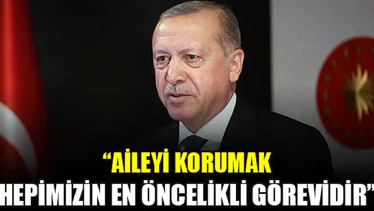 Cumhurbaşkanı Recep Tayyip Erdoğan, 'Aile kurumunun yıpratılmasına karşı durmak, toplumun temel direği olan aileyi korumak hepimizin en öncelikli görevidir' dedi.
