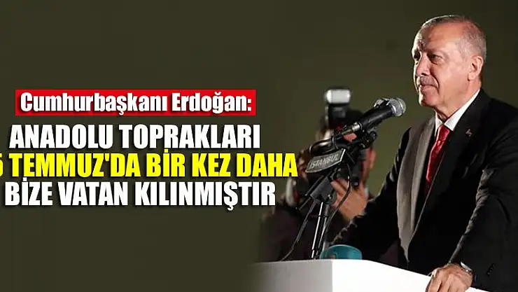 - Cumhurbaşkanı Erdoğan: Anadolu toprakları 15 Temmuz'da bir kez daha bize vatan kılınmıştır