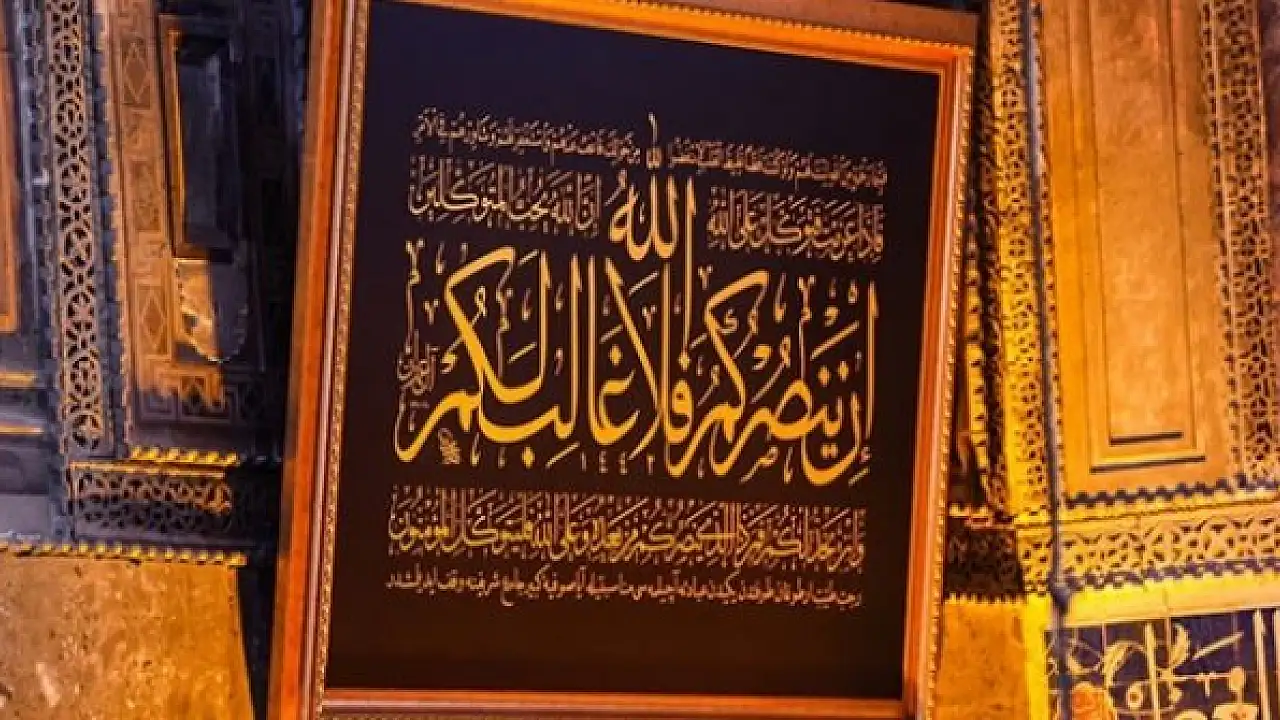 Cumhurbaşkanı Erdoğan, Ayasofya-i Kebir Cami-i Şerifi'ne hat tablosu bağışladı. Al-i İmran suresinin 159. ve 160. ayetlerin yazılı olduğu tablo Ayasofya'ya asıldı.