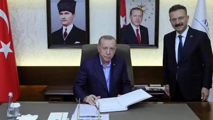 Cumhurbaşkanı Recep Tayyip Erdoğan, Aydın Valiliğini ziyaret etti, Valilik Şeref Defteri'ni imzaladı.