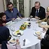 Erdoğan çifti, yemek öncesi evdekilerle sohbet etti.