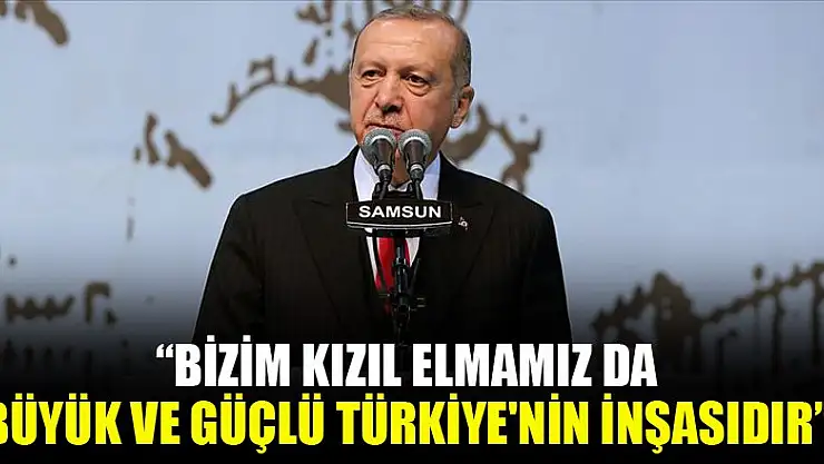 Cumhurbaşkanı Erdoğan, 'Her milletin hedefi, davası, uğruna ölümü göze aldığı bir kızıl elması vardır. Bizim kızıl elmamız da büyük ve güçlü Türkiye'nin inşasıdır.' dedi.