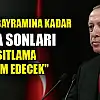 Erdoğan, koronavirüsle mücadele ile ilgili, "Artık tünelin ucu Allah'ın izniyle göründü. Ramazan Bayramı'nı iki bayram olarak Rabb'im bizlere kutlamayı nasip etsin." şeklinde konuştu.