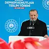 Cumhurbaşkanı Erdoğan, 'Bugüne kadar ülkemize ve vatandaşlarımıza ne söz verdiysek yaptık. Bugün teslim ettiğimiz konutlar da sözümüzün eri olduğumuzun son örneğidir.' dedi.