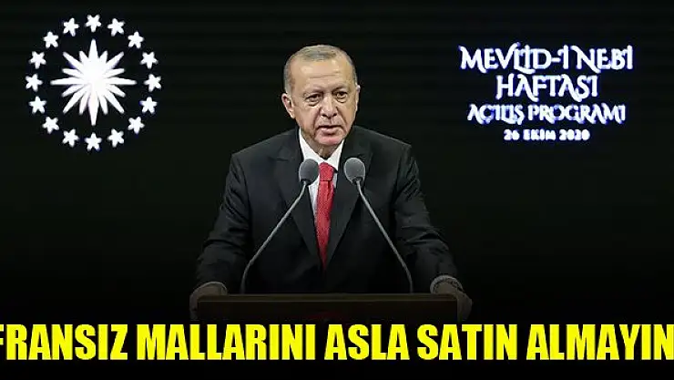 Cumhurbaşkanı Erdoğan, 'Fransa'nın akli noktada kontrole muhtaç olan liderinin teşvikiyle bu saldırılar yapılmaya başlandı. Buradan milletime sesleniyorum, Fransız mallarını asla satın almayın.' dedi.