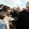 Çadır kentte kendisini karşılayan çocuklarla yakından ilgilenen Erdoğan, bir çocuğu da kucağına aldı.