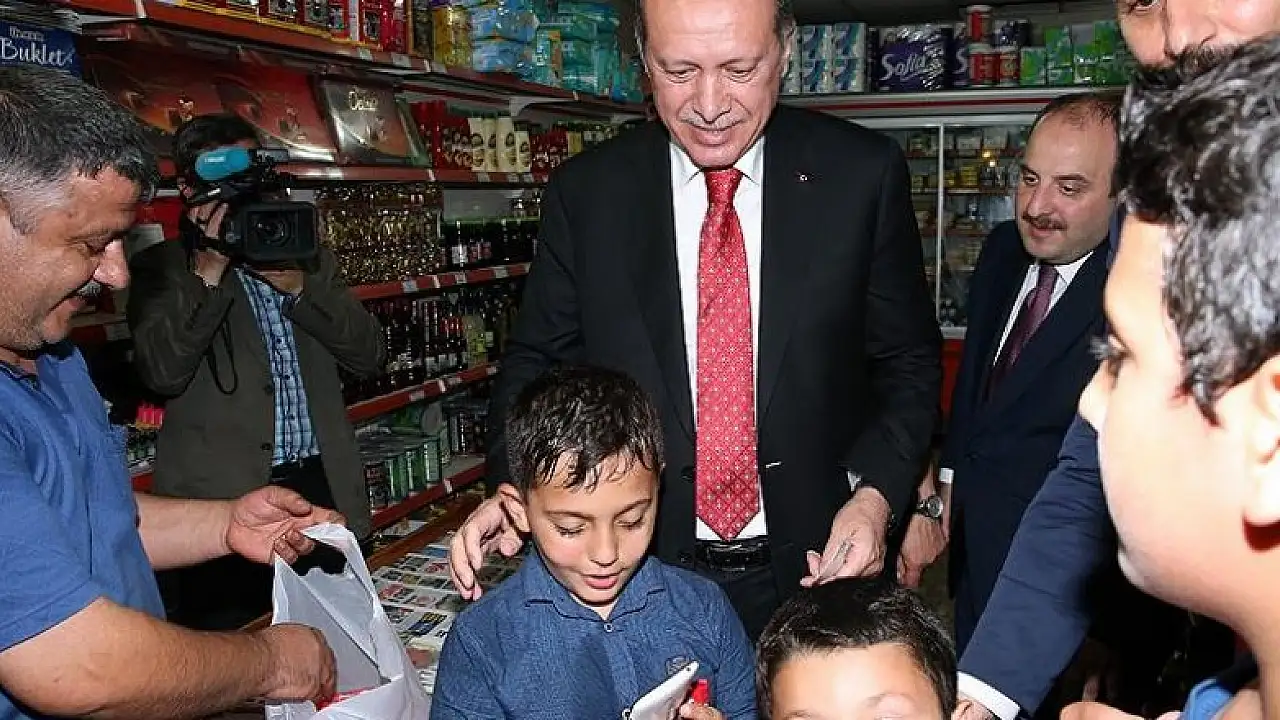 Cumhurbaşkanı Erdoğan, vatandaşlarla sohbet etti, çocuklara çikolata alıp oyuncak dağıttı.