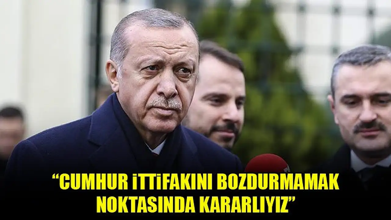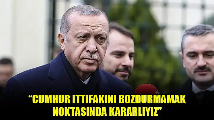 Cumhurbaşkanı Recep Tayyip Erdoğan, cuma namazı çıkışı yaptığı açıklamada, 'Cumhur ittifakını bozdurmamak noktasında kararlıyız.' dedi.