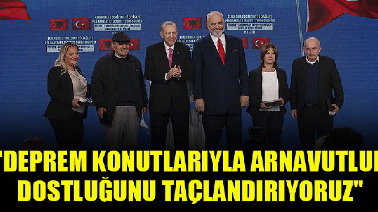 Cumhurbaşkanı Erdoğan, Türkiye'nin, Arnavutluk'taki depremin ardından bölgeye yardıma koşan ilk ülke olduğunu belirterek, 'Bugün toplam 522 konutu içeren, yaklaşık 42 milyon avroya mal olan evleri teslim ediyoruz.' dedi.