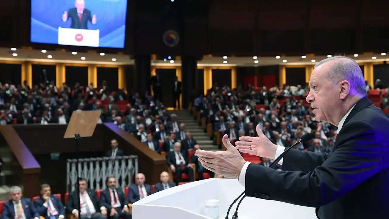 Bölücü terör örgütü PKK'nın fesih ve silah bırakma kararına ilişkin Erdoğan, "Türkiye 1984 yılından bugüne 41 yıl boyunca bölücü terörün kanlı eylemlerine sahne oldu. Bu süre zarfında terörle mücadelede 10 binden fazla güvenlik görevlimizi maalesef şehit verdi. Yine 41 yıl boyunca 50 binden fazla insan hayatını kaybetti. Terörün Türkiye'ye doğrudan ve dolaylı maliyeti 2 trilyon doları buluyor. Terör sadece terör olarak kalmadı. Terör üzerinden maalesef değişik sektörler ortaya çıktı. Terörün varlığından, terör eylemlerinden örgüt kadar başkaları da şahsi rant elde ettiler. Terör üzerinden maalesef değişik sektörler ortaya çıktı. Terörün varlığından, terör eylemlerinden örgüt kadar başkaları da şahsi rant elde ettiler. Terör meselesi üzerinden siyasi istismar yapanlar oldu. Terör bataklığında kendi kirli fikirlerini, kirli emellerini yaymak isteyenler oldu. Türkiye, dışarıdan şiddet eylemlerine maruz kalırken içeride bunu fırsata çevirmeye çalışan terör baronlarının da istismarına maruz kaldı. Geçmişte bu meselenin çözümü için bilhassa merhum Özal döneminde çok cesur adımlar atıldı ama dışarıdan olduğu kadar içeriden yapılan sabotajlarla bu çözüm engellendi. Türkiye gerçekten çok büyük bedeller ödedi. Binlerce annenin yüreğine kor bir ateş düştü. Türk, Kürt kardeşliği çok ağır yaralar aldı. Biz de göreve geldiğimiz andan itibaren hem ülkemizin demokrasi açığını özellikle kapatmak hem de terör belasından ülkemizi ve Kürt kardeşlerimizi kurtarmak için hakikaten çok büyük emek verdik. Hak ve özgürlük alanlarının genişletilmesinden vesayetle mücadele adına sessiz devrim dediğimiz tarihi nitelikte adımlar attık. Terör örgütünün beslenme alanlarını hamdolsun önemli ölçüde kuruttuk" ifadelerini kullandı.