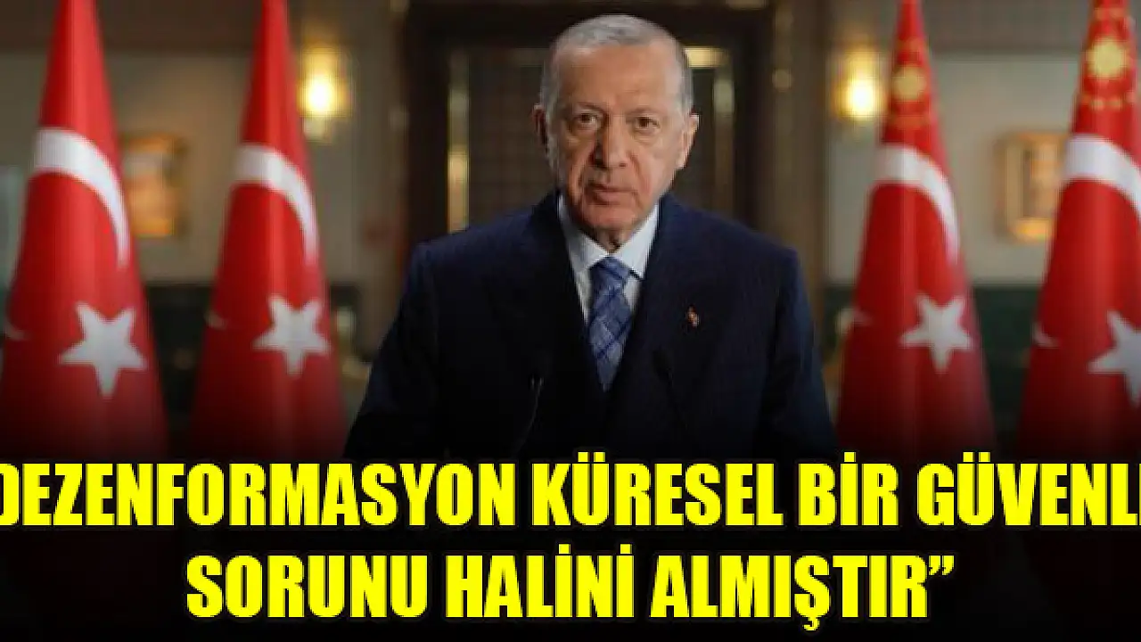 Cumhurbaşkanı Recep Tayyip Erdoğan, 'Dezenformasyon sadece bir milli güvenlik meselesi olmanın ötesine geçerek küresel bir güvenlik sorunu halini almıştır.' dedi.