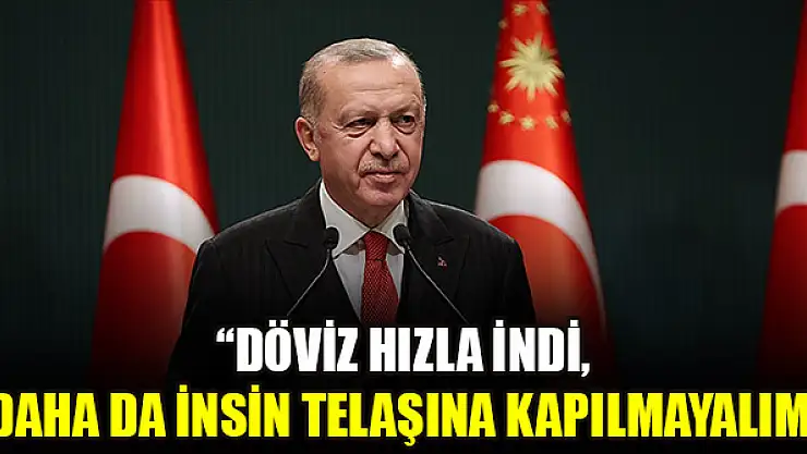Cumhurbaşkanı Recep Tayyip Erdoğan, dövizdeki düşüşle ilgili, 'Hızla indi, daha da insin telaşına kapılmayalım' dedi.