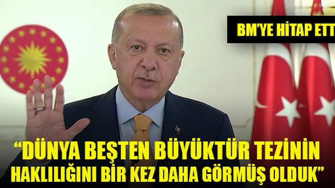Cumhurbaşkanı Erdoğan, 'Salgının başlarında, ülkelerin kendi hallerine terk edildiği bir manzara ortaya çıktı. Böylece, yıllardan beri bu kürsüden ısrarla dile getirdiğim 'Dünya beşten büyüktür' tezinin haklılığını bir kez daha görmüş olduk.' dedi.