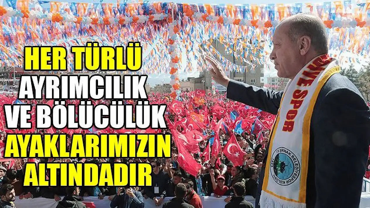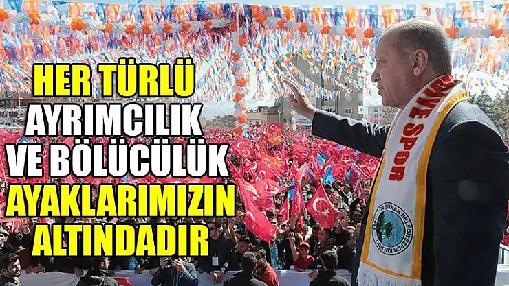 Cumhurbaşkanı Erdoğan, 'Biz, bu ülkenin her şehrine sevdalıyız. Her türlü ayrımcılık ve bölücülük ayaklarımızın altındadır.' dedi.