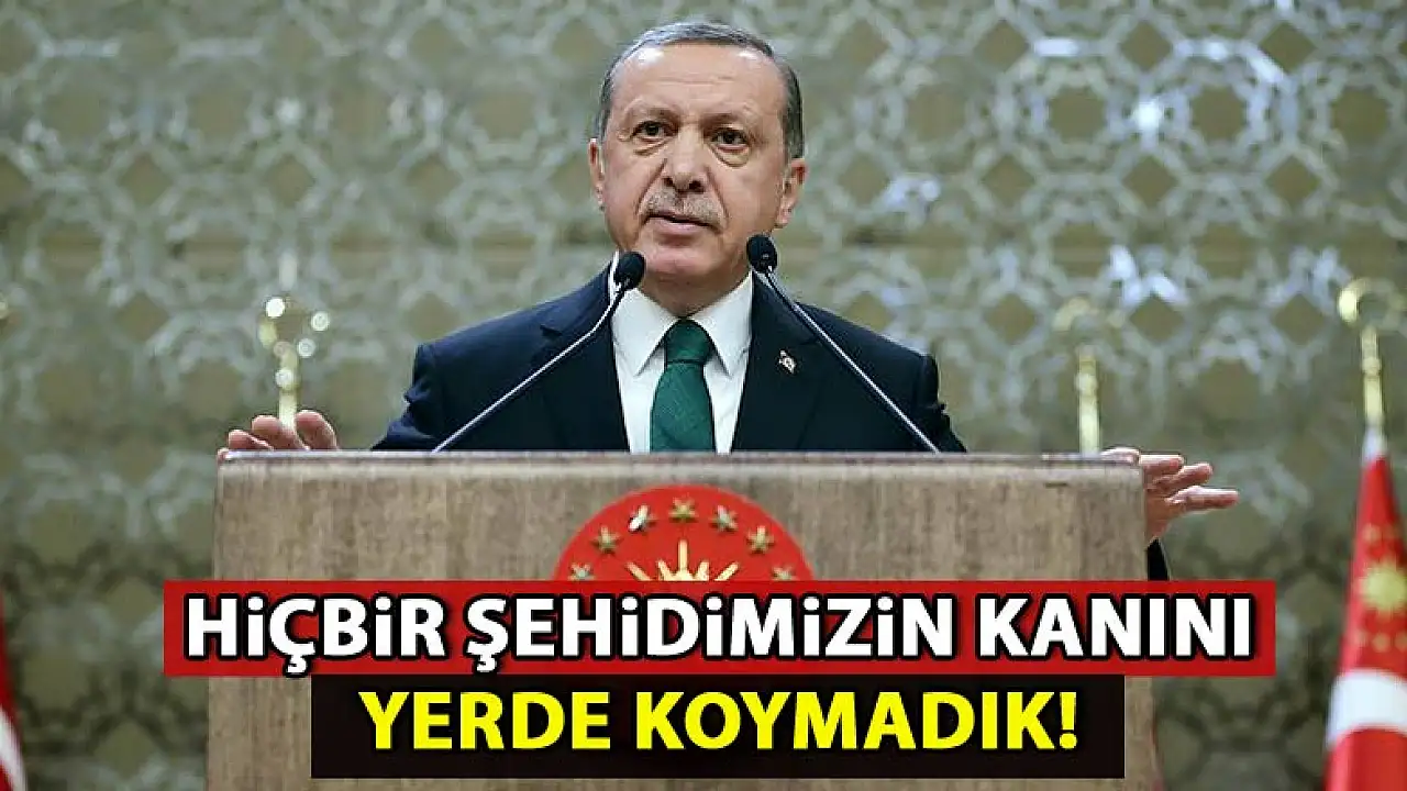 Cumhurbaşkanı Erdoğan, 'Hamdolsun, bugüne kadar hiçbir şehidimizin kanını yerde koymadık. Teröristlere misliyle cevabını verdik, veriyoruz. İnlerine girdik, giriyoruz. Girmeye de devam edeceğiz.' dedi.