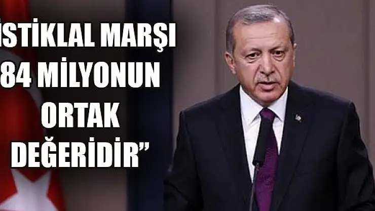 Cumhurbaşkanı Recep Tayyip Erdoğan, 'İstiklal Marşı, Türküyle, Kürdüyle, Çerkeziyle, Arabıyla, Alevisi, Sünnisi, Lazıyla 84 milyonun ortak değeri, ortak paydasıdır' dedi.